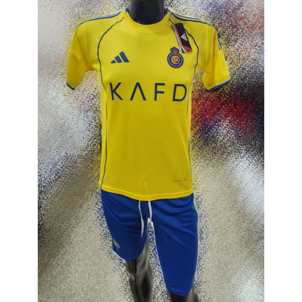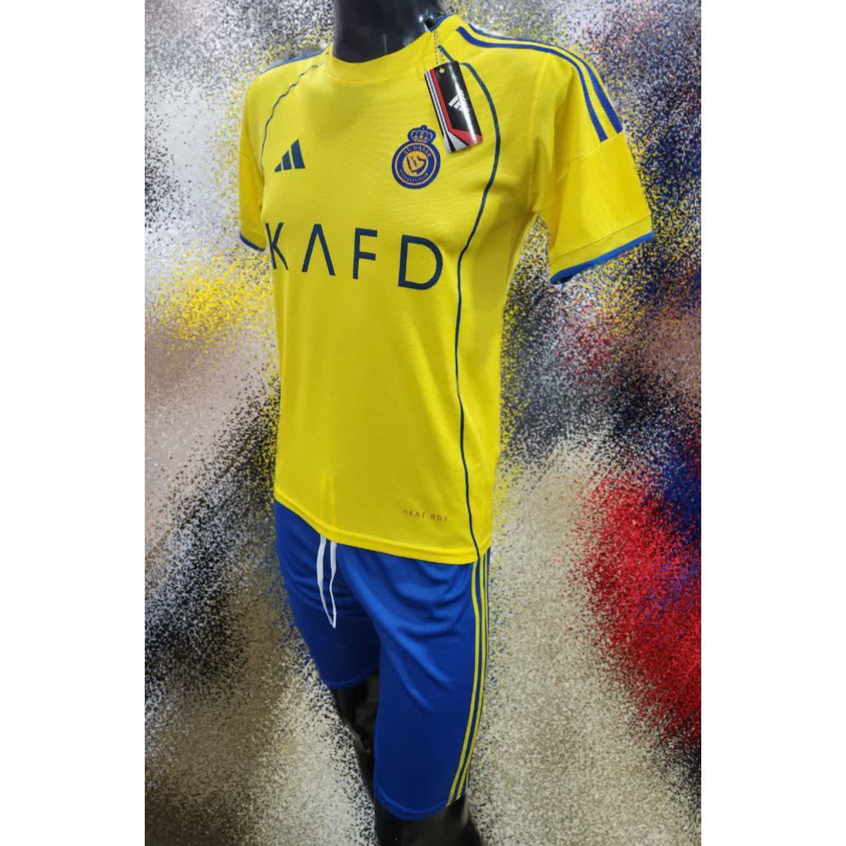 رنگ و استایل: زرد غالب (کیت اول) با جزئیات هماهنگ که نمایی باشگاهی و شیک ایجاد میکند. 🟡