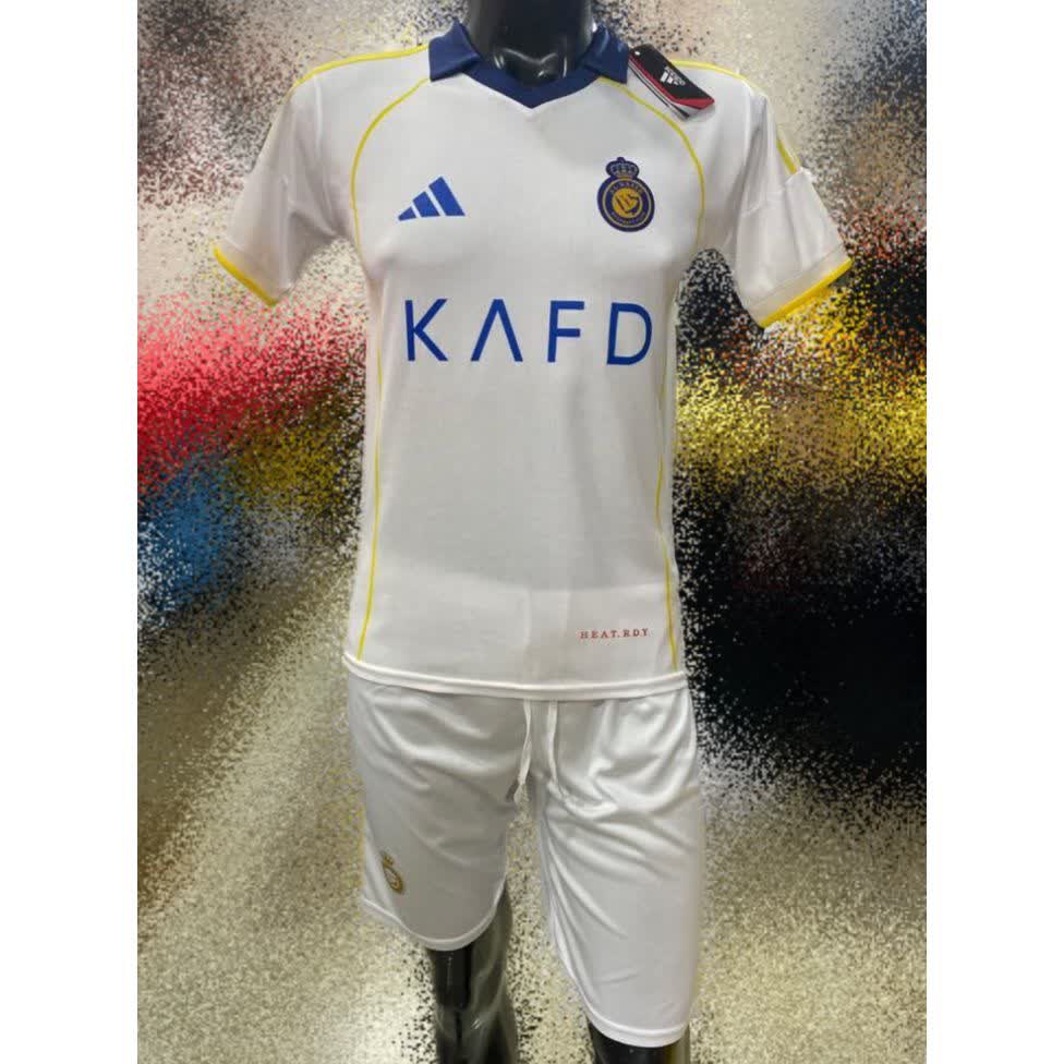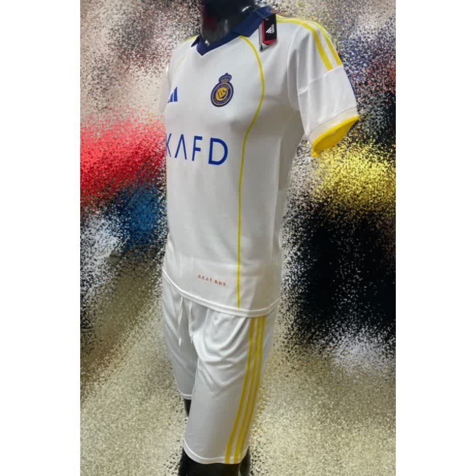 کیت سوم تیم النصر 2026، ست رسمی و باکیفیت برای طرفداران النصر و ستاره شماره 7، کریستیانو رونالدو است. این کیت شامل تیشرت و شورت هماهنگ بوده و با جنس سوپر فلامنت (حصیری) و دوخت بسیار تمیز و حرفهای در ایران تولید شده است، که راحتی و دوام بالا را برای بازیکنان و هواداران تضمین میکند.