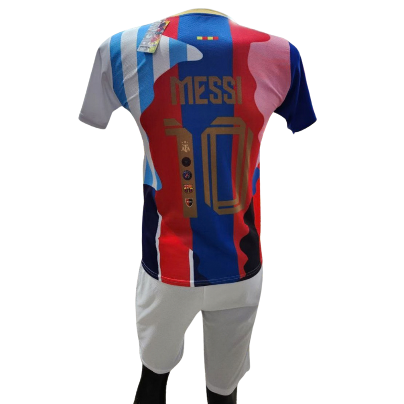 کیت فوتبالی لیونل مسی شماره ۱۰ یک ست کامل ورزشی برای علاقه‌مندان فوتبال و طرفداران این اسطوره دنیای فوتبال است. این محصول شامل تیشرت فوتبالی به همراه شورت باشگاهی بوده و با استفاده از پارچه ورزشی سبک و چاپ باکیفیت تولید شده است.
