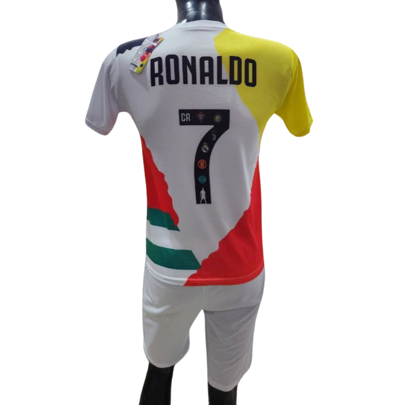 کیت فوتبالی کریستیانو رونالدو شماره ۷ یک ست کامل ورزشی شامل تیشرت فوتبالی و شورت باشگاهی است که برای فوتبالیست‌ها و علاقه‌مندان این بازیکن محبوب طراحی شده است.